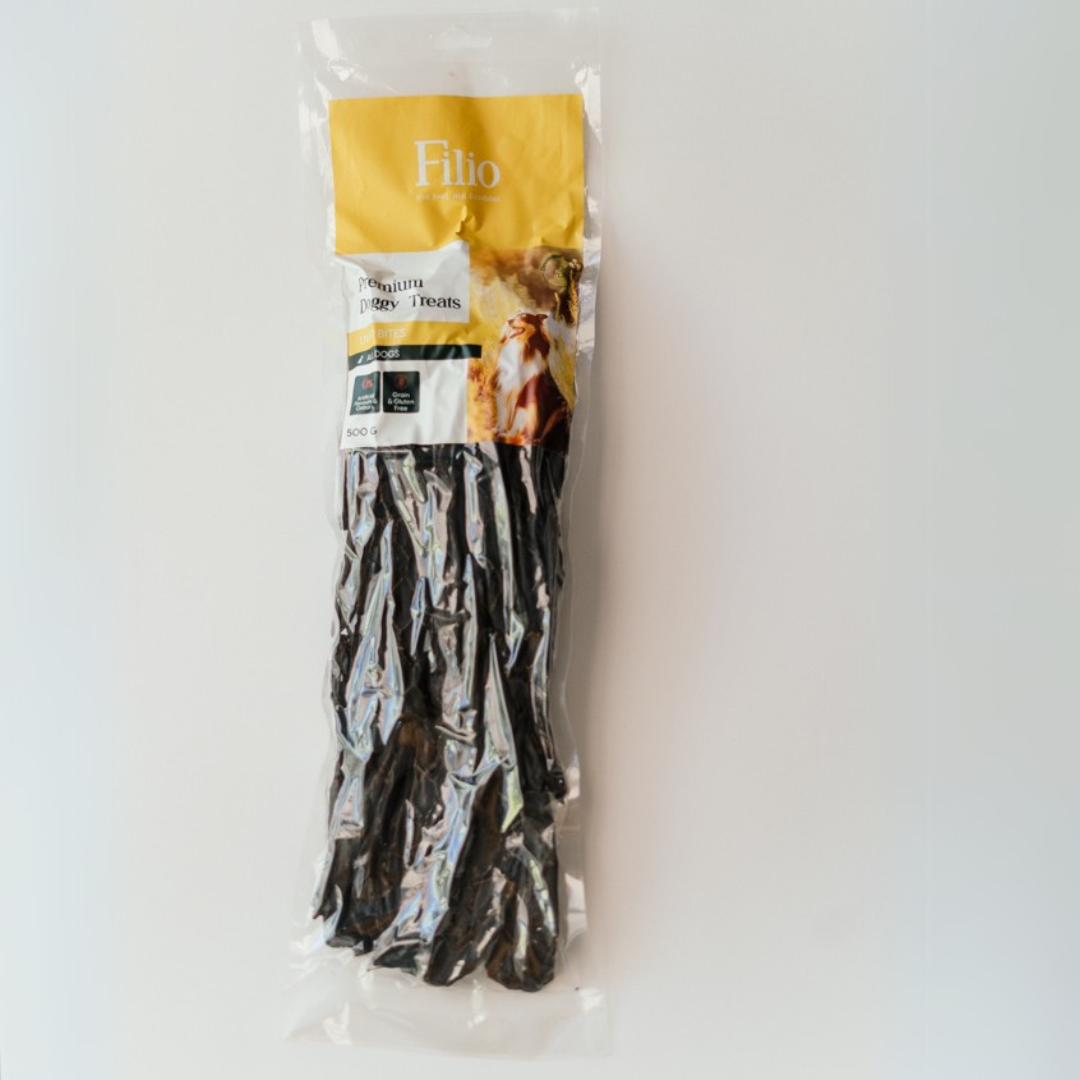 Filio liver biltong is made from 100% natural dried grass-fed beef. It contains no grain, gluten-free, no soy, no salt and no artificial preservatives or colourants. Suitable for small, medium & Large dogs. Product of South Africa.